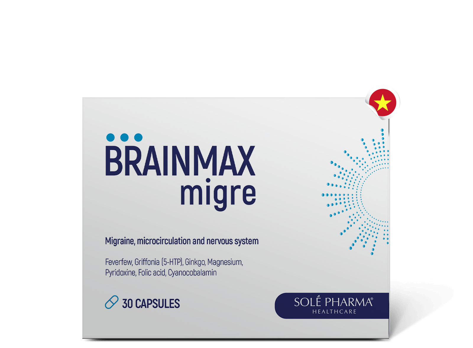 Solemax® Migre through a central neuromodulation and a peripheral desensitization prevents migraine attacks and reduces headaches. The product involves various effective components that are necessary for the long-term migraine prevention and brain health.